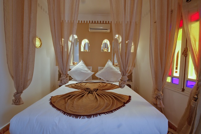 This unique place stands out for its calming for the mind, eyes and body and will enchant your nights as your days. Concerned about your comfort during your stay, our team has built numerous relaxation areas, both around the patio, which offers a pool converted into a swimming pool in the various small alcoves available to the Riad in the living room, or even on our roof terrace, a real invitation to rest and relaxation. Deckchairs are available for sunbathing and relaxation. You will find on this roof terrace the best way to temporarily cut off from the world and draw the energy to come back strongly.